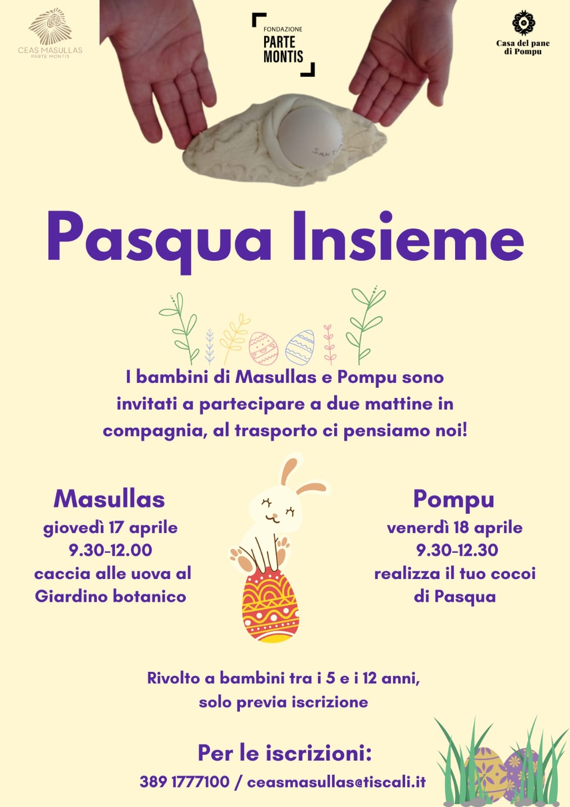 Il progetto è rivolto a bambini di Masullas e Pompu e prevede attività laboratoriali e ludiche, strutturate secondo i principi della sostenibilità e dell’educazione ambientale, per promuovere la conoscenza del territorio e delle sue tradizioni legate al periodo pasquale.